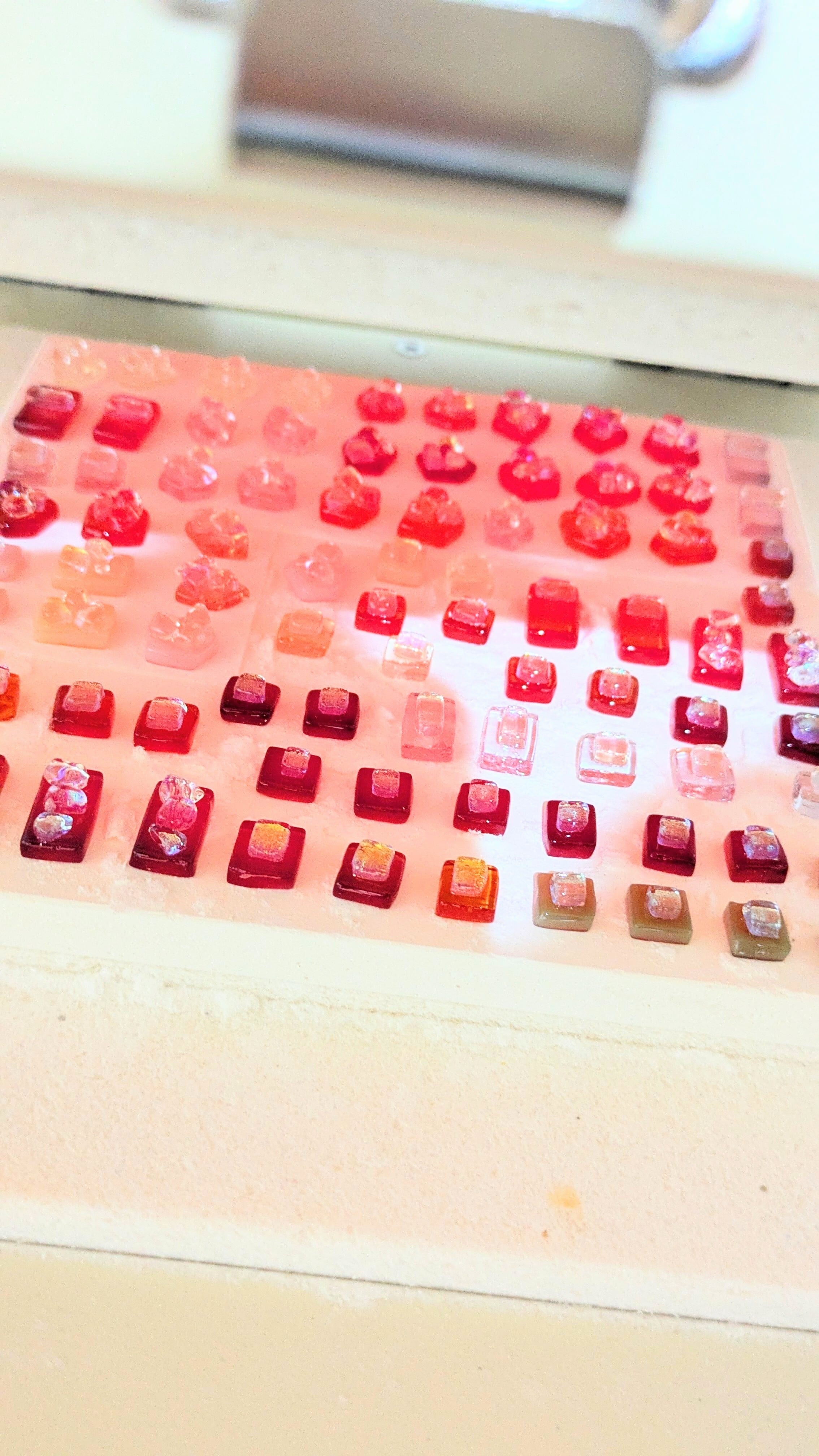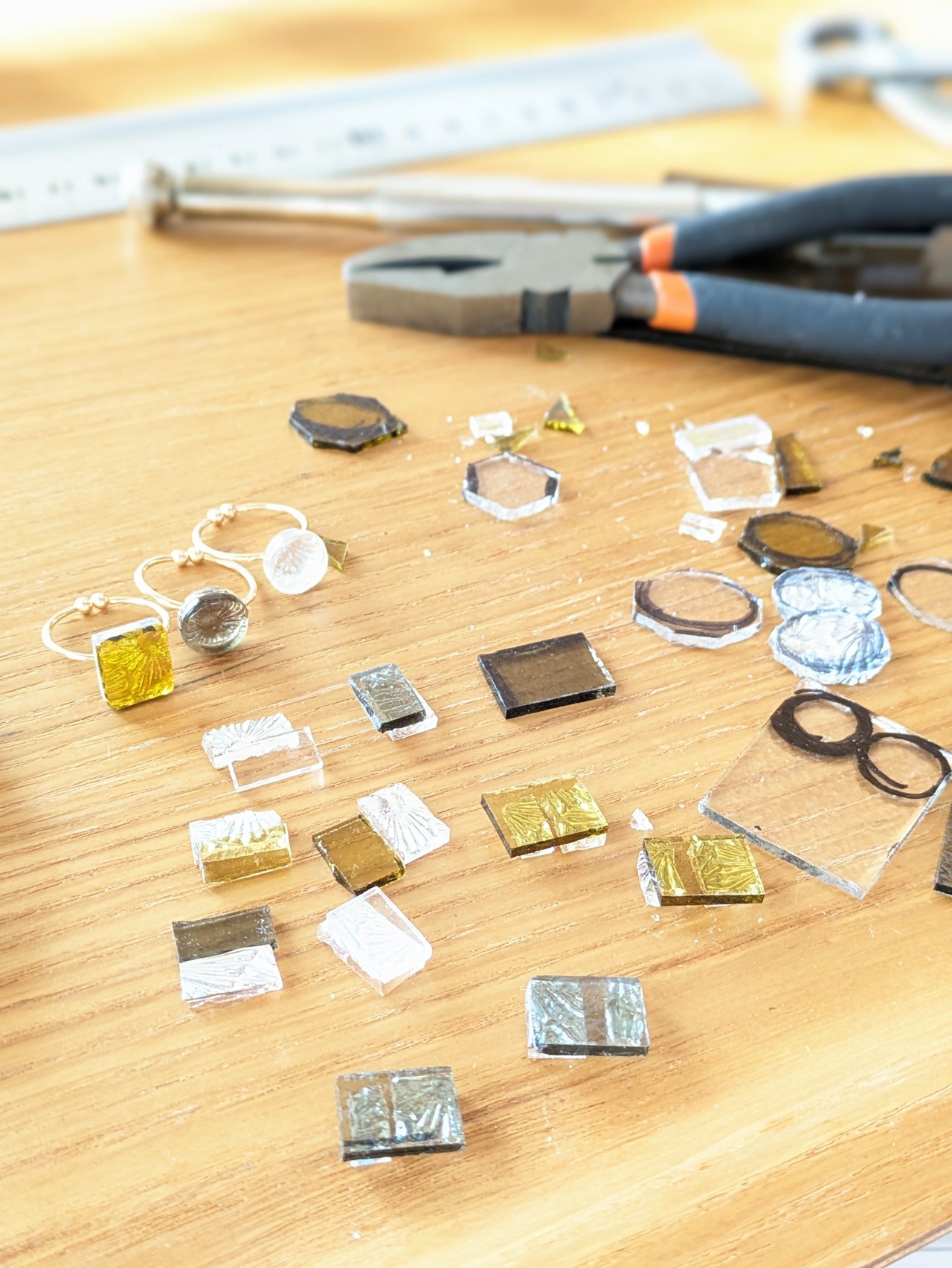 SAWAのガラス作品は全て、板ガラスのカット→デザイン→研磨作業→電気炉で焼成→2度目の研磨作業→2度目の焼成と全工程手作業で制作しております。(フュージング技法)