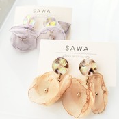 ブラウン色ガラスとゴールドがキラキラ輝き、揺れるフリンジが耳元をおしゃれに演出してくれます。
