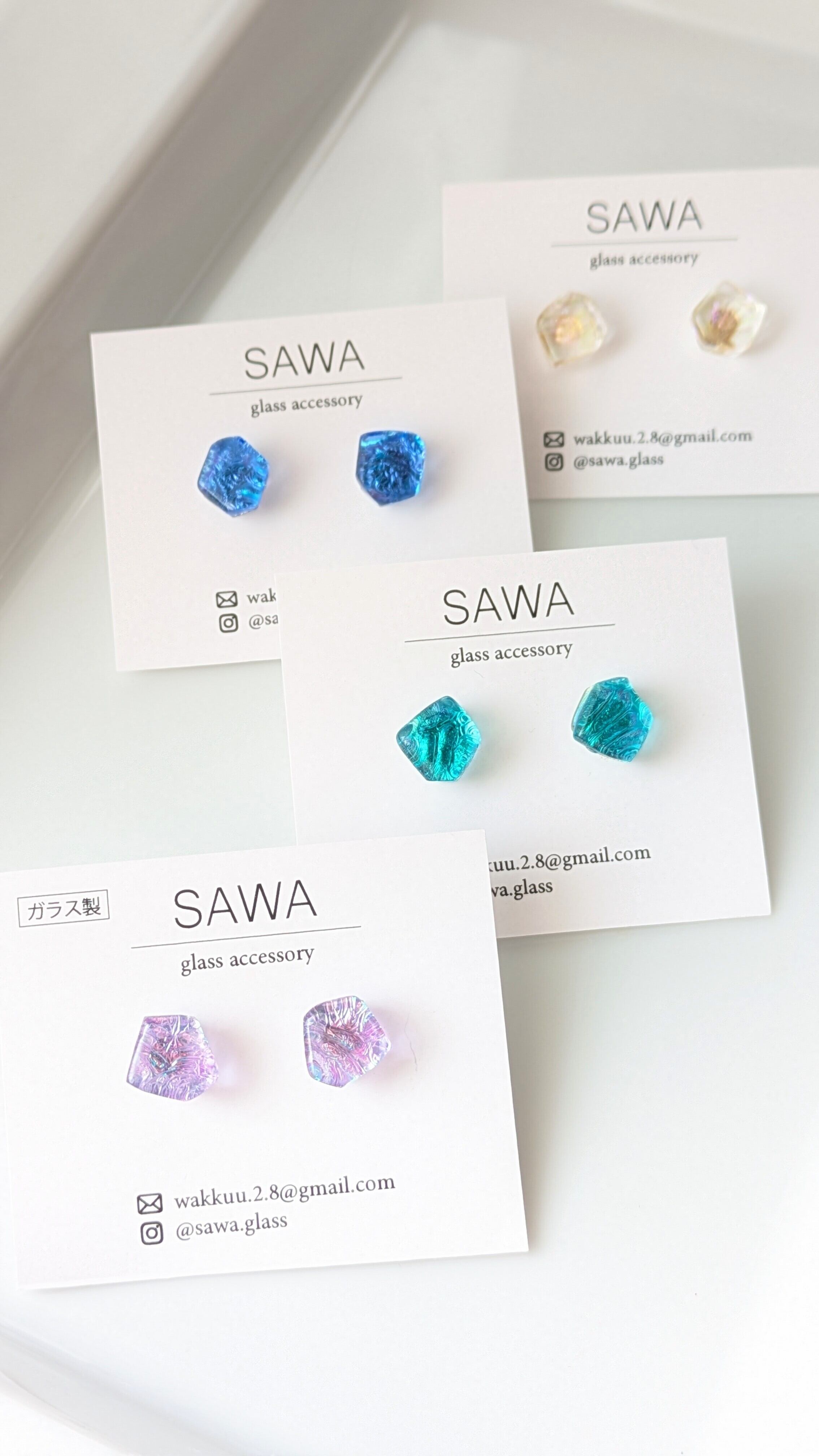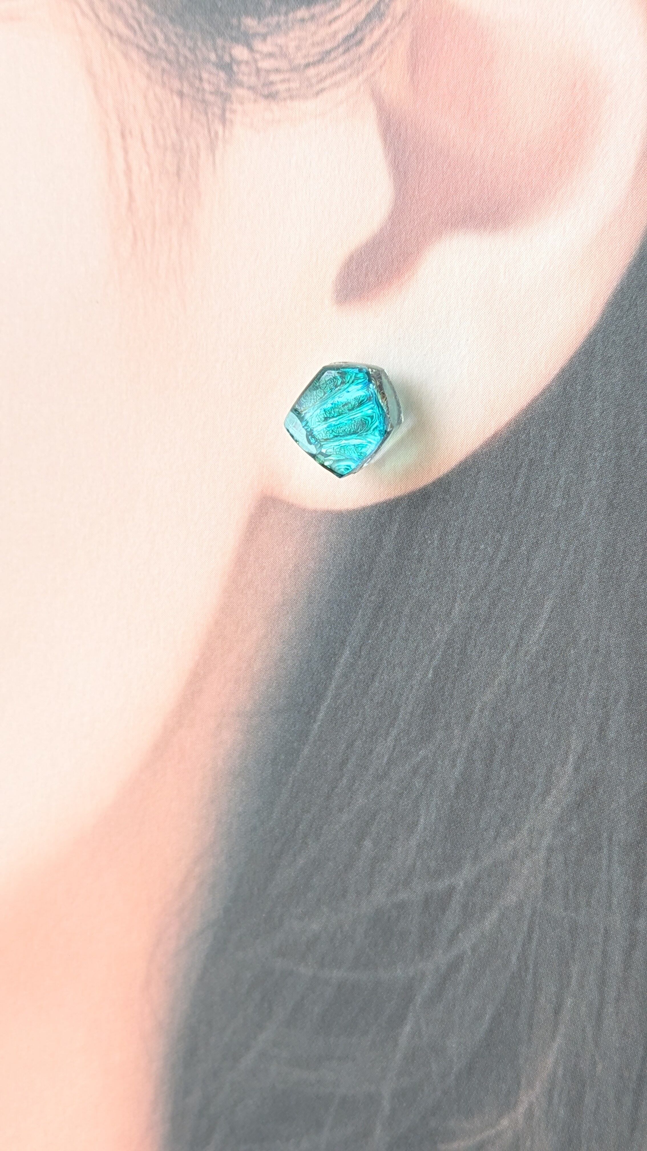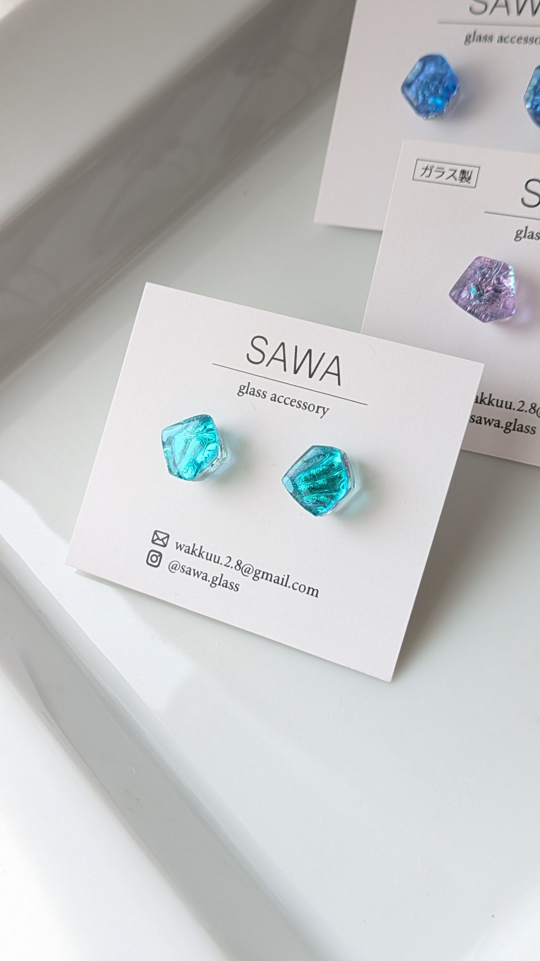 ひと欠片の星屑のようにガラスをカットした煌めくアクセサリー。神秘的な輝きのターコイズブルーが印象的で、耳元で華やかに目を引きつけます。洗練された大人の女性にぴったりなデザインは、シンプルさの中に特別な存在感。どんなスタイルにも自然に溶け込みます。