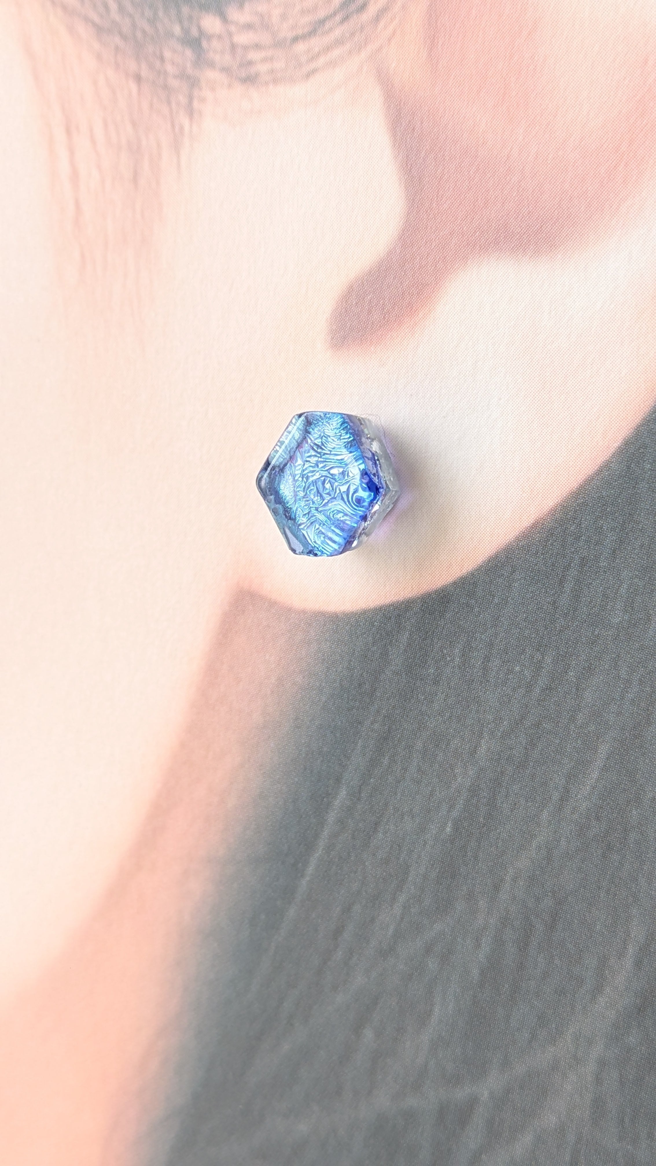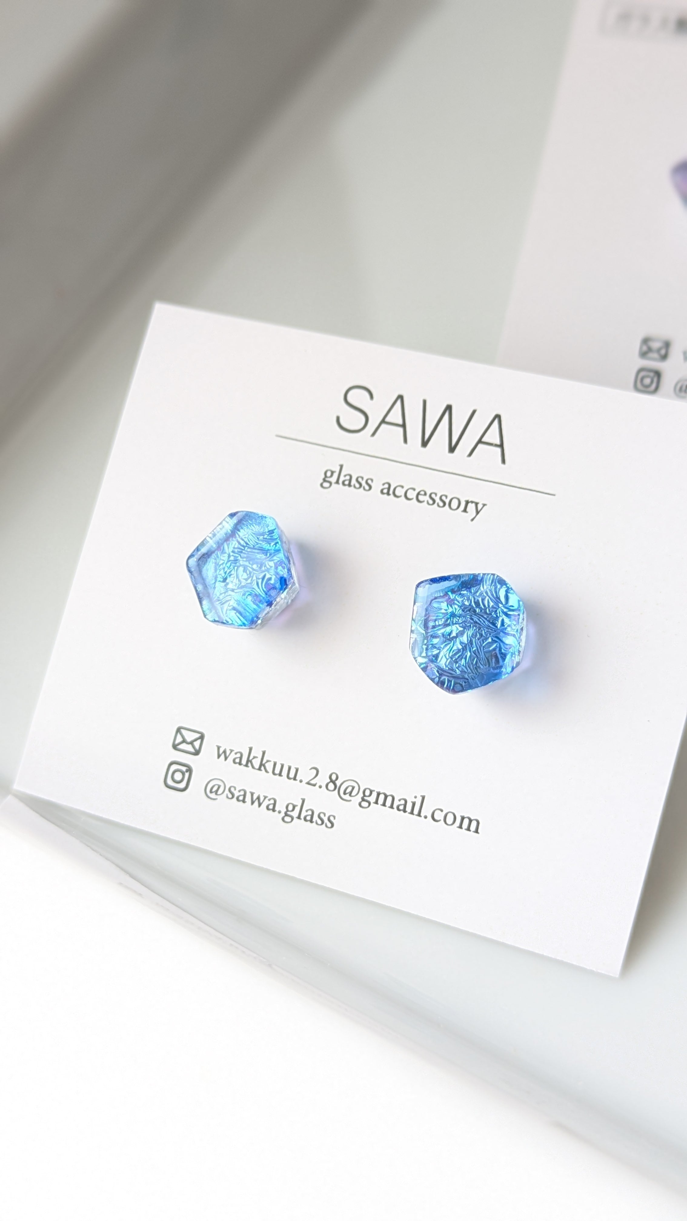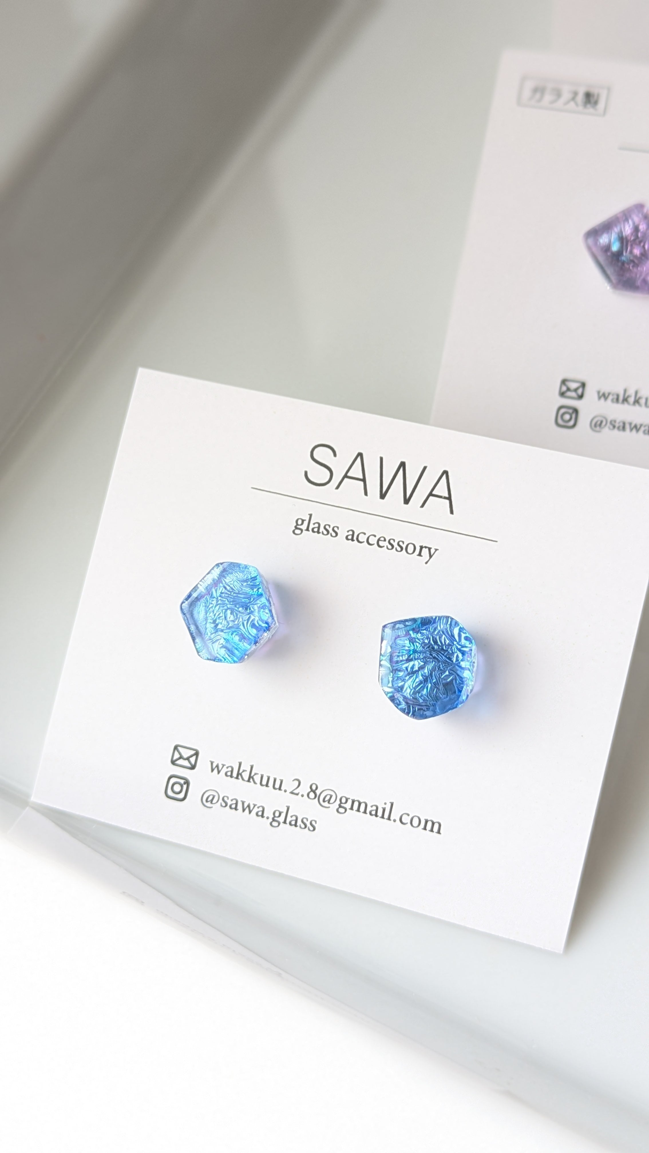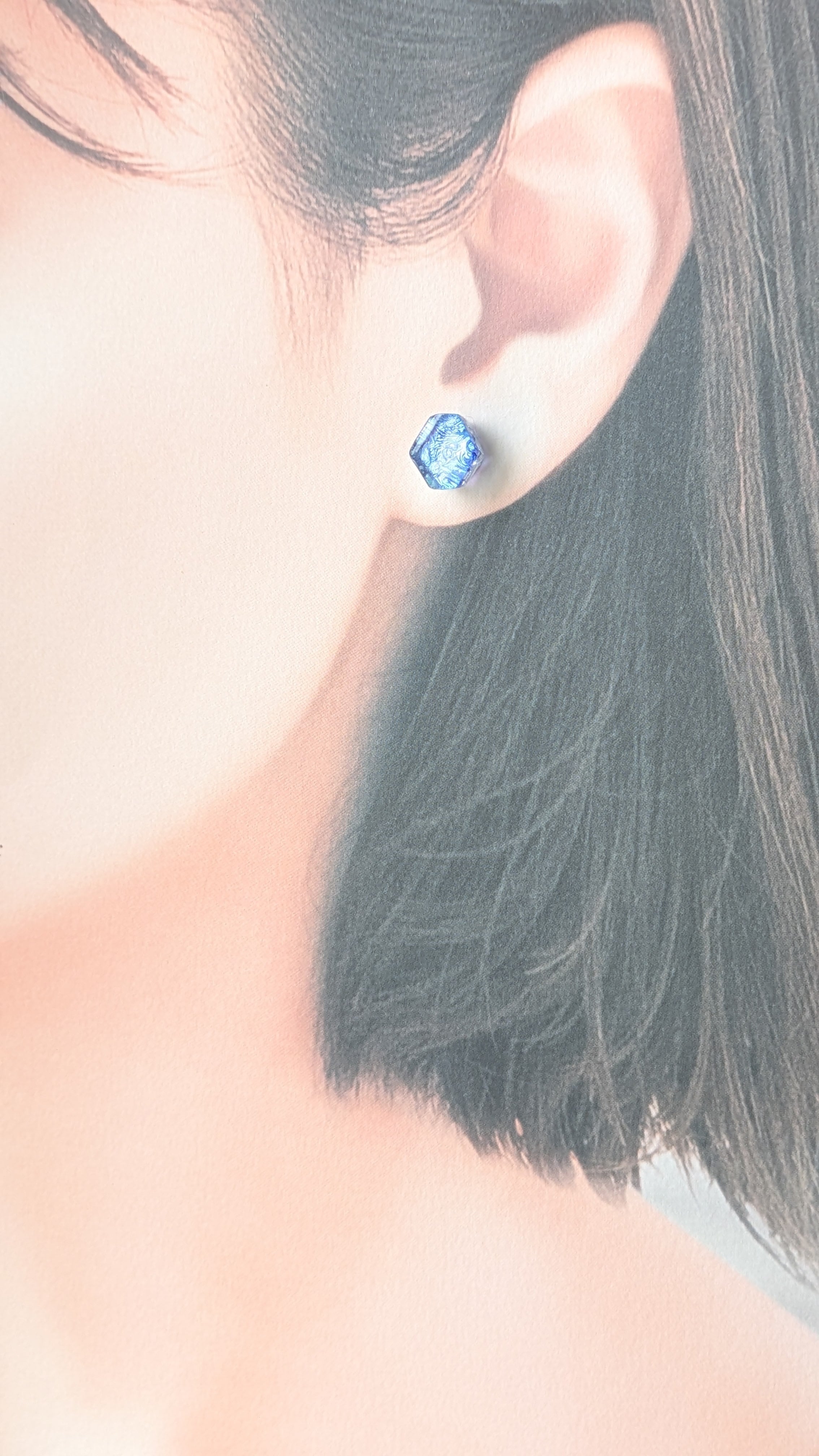 ひと欠片の星屑のようにカットされた神秘的な輝きを持つガラスアクセサリー。透明感あふれる美しいブルーが目を引き、耳元で華やかに存在感を放ちます。洗練された大人の女性にぴったりなデザインは、シンプルでありながら特別な存在感を持ち、どんなスタイルにもオススメ。