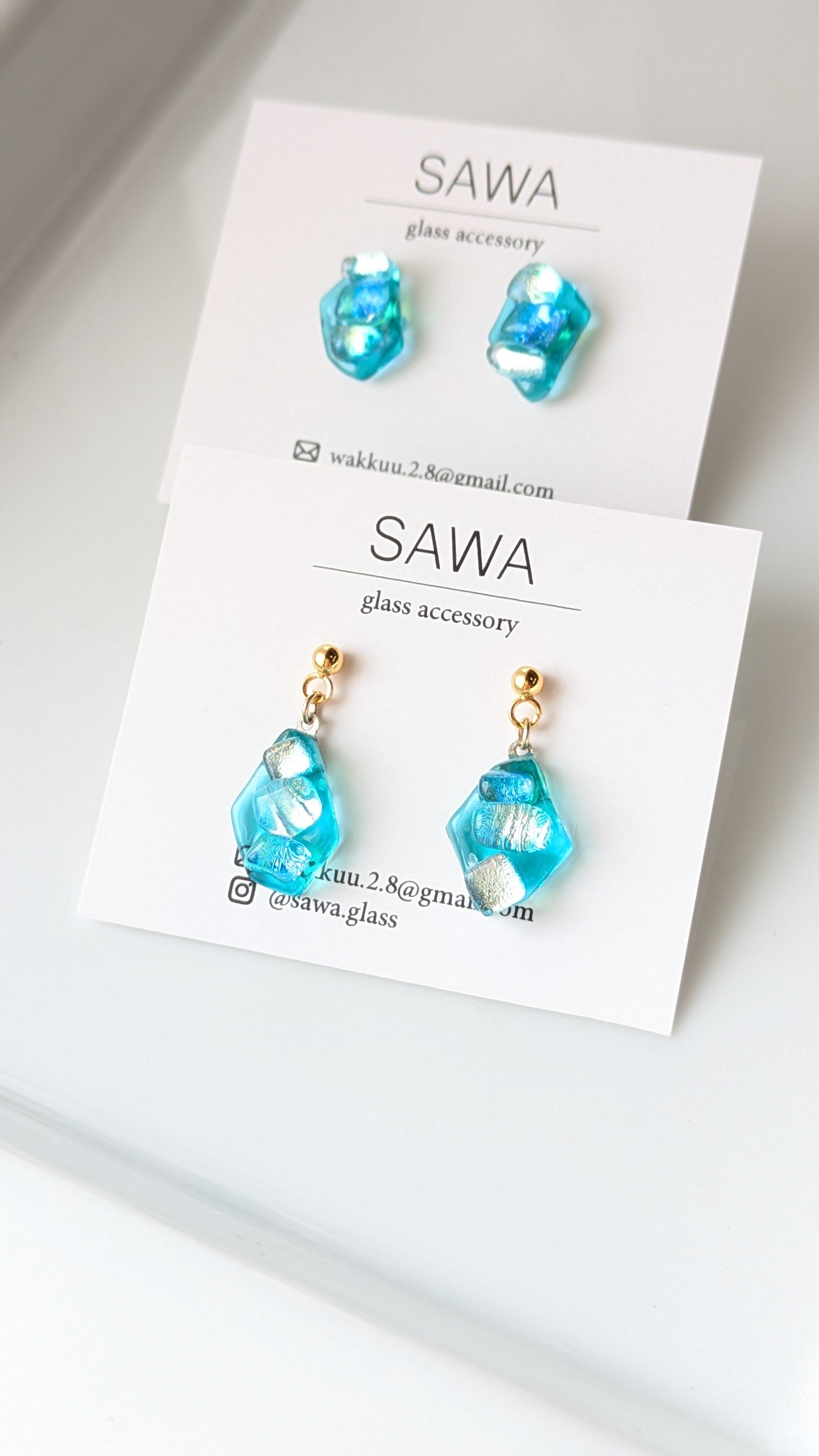 ■ オーロラガラスが煌めくガラスアクセサリー ターコイズブルー